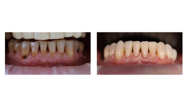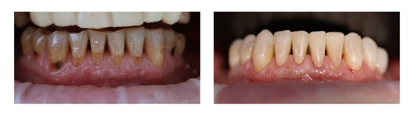 Pacientui buvo aliktaS estetinis apatinių priekinių dantų plombavimas.