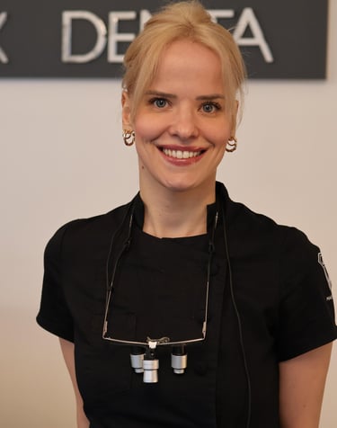 Burnos higienistė, kuri išsiskiria švelnumu ir kruopštumu. Ji rūpinasi kiekvienu pacientu, užtikrindama, kad gydymo procesas būtų ne tik profesionalus, bet ir malonus.