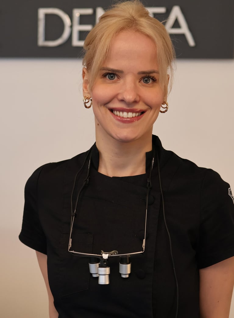 Burnos higienistė, kuri išsiskiria švelnumu ir kruopštumu. Ji rūpinasi kiekvienu pacientu, užtikrindama, kad gydymo procesas būtų ne tik profesionalus, bet ir malonus.